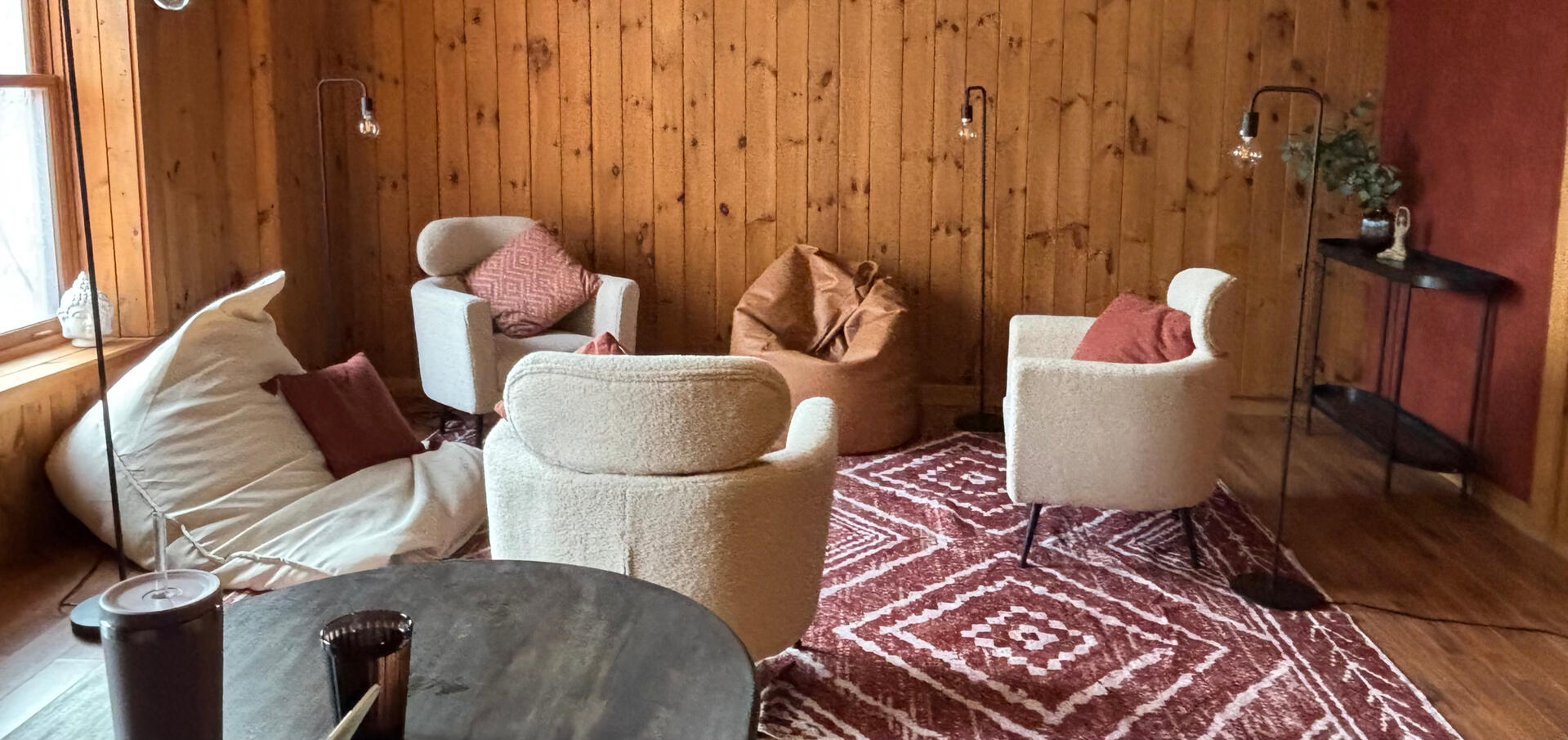 Dans la salle BOHOM, rien n’est laissé au hasard. Cet espace est conçu pour optimiser les résultats de vos séances avec vos clients.La Brume d’Ambiance BOHOM, au pamplemousse et romarin, est diffusée dans la salle pour soulager le stress et la tension nerveuse de vos clients.Un espace coloré pensé pour le bien-être : la couleur de la salle, inspirée des chakras racine et sacré, crée une ambiance cocon qui priorise le bien-être et la sécurité. Même les motifs du tapis ont été soigneusement sélectionnés pour guider le regard de votre client vers le bas, favorisant un contact plus profond avec ses émotions et son corps. En soirée, un éclairage tamisé enveloppe vos séances pour une expérience apaisante.Le bien-être de votre client avant tout! Nous savons que le changement peut générer du stress et modifier rapidement les indices corporels. Tout est prévu! Un refroidisseur d’eau offrant également de l’eau bouillante est à votre disposition, afin que vous puissiez toujours offrir un verre d’eau ou une tisane réconfortante. Des couvertures sont également disponibles pour accompagner les moments de transformation.Et bien sûr, vous trouverez toujours 1 ou 2 boîtes de mouchoirs ultra-doux pour vos clients.